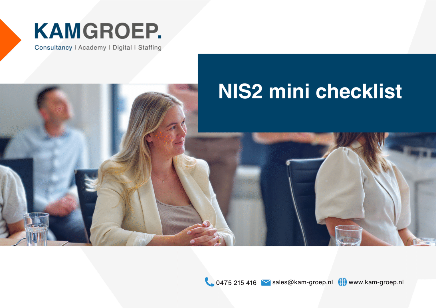 Als onderdeel van KAM Groep combineren we NIS2-expertise met onze brede ervaring in normen zoals ISO 27001 (informatiebeveiliging), ISO 22301 (continuïteit) en ISO 9001 (kwaliteit). Zo bouwen we samen aan een geïntegreerd managementsysteem waarmee je niet alleen voldoet aan wetgeving, maar ook sterker wordt in de praktijk.